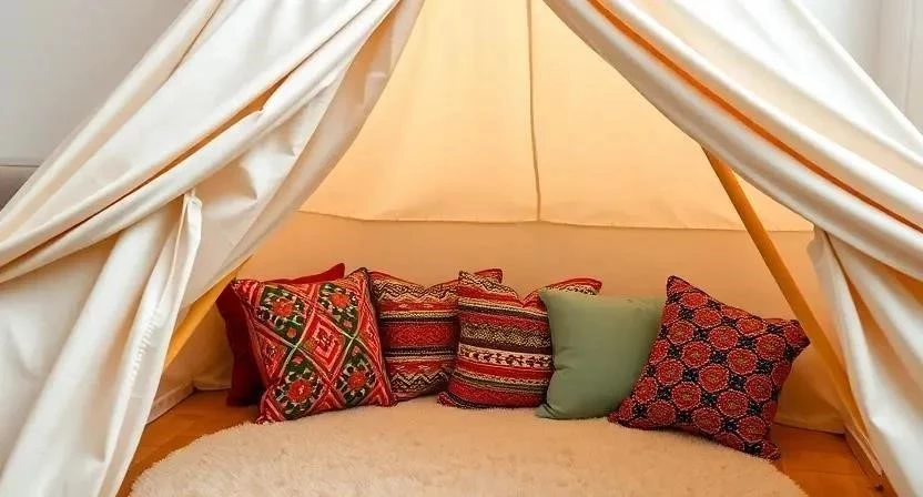 - Вигвам или шатер для игр: Создайте уютный уголок для ребенка, где он сможет играть, читать или просто мечтать. Вигвам или шатер можно сделать из ткани, дерева или даже картонных коробок.