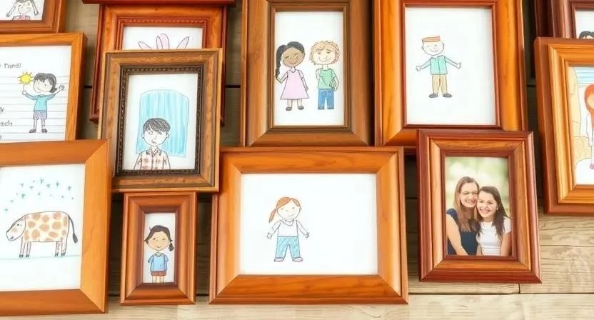 - Создание фотогалереи: Рамки для фотографий можно сделать своими руками из картона, дерева или ткани. Создайте коллажи из фотографий ребенка и его друзей.
