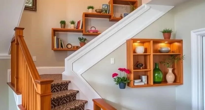 Полки и стеллажи на лестнице