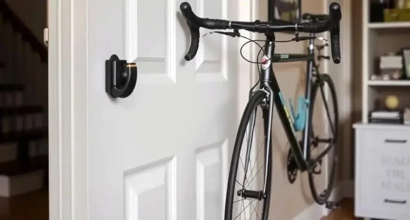 - Хранение за дверью: Специальные крепления позволяют закрепить велосипед на двери, освобождая пространство в комнате.