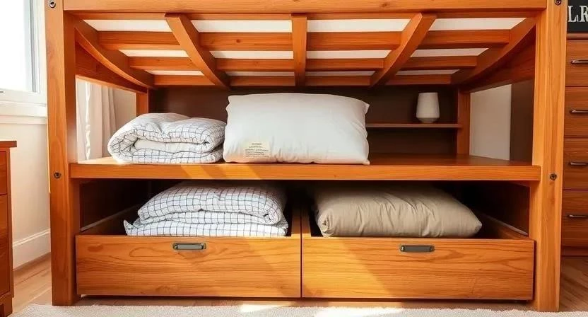 | Под кроватью | Экономия места | Сложный доступ, пыль | Сезонного белья |