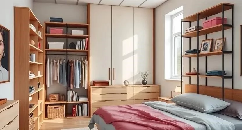 Ответ: Используйте многофункциональную мебель, вертикальное хранение и ящики под кроватью.