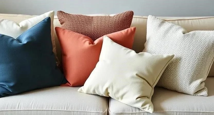 - Декоративные подушки разных размеров и форм