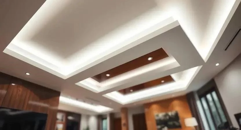 - Подвесные потолки: Возможность создания многоуровневых конструкций, скрытие коммуникаций, звукоизоляция.