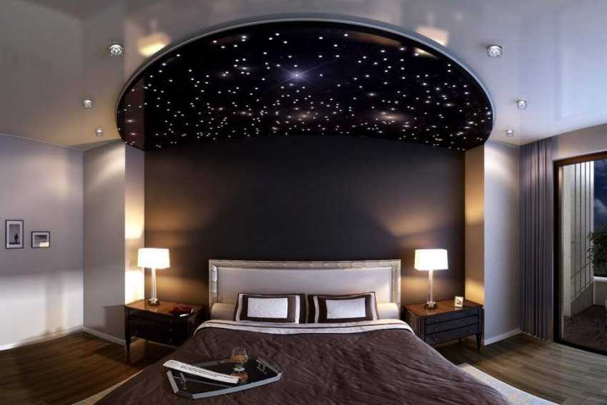 За счёт гармоничности цветовых смешений можно обустроить дизайн спальни как пожелает душа, делая потолок необыкновенным и волшебным образом.