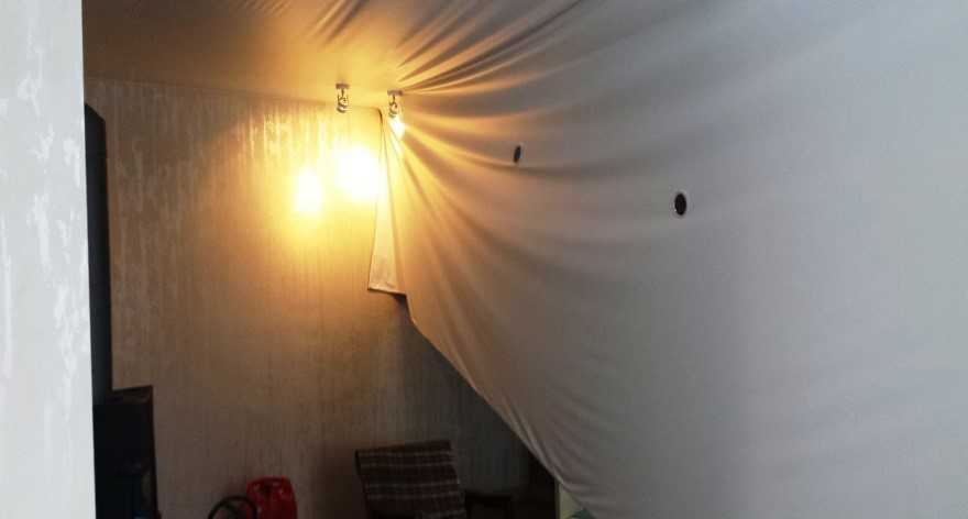 Таким образом удастся избежать многих проблем в будущем. В процессе демонтажа все осветительные приборы должны быть устранены на некоторое время. Громоздкие люстры также демонтируются заранее, до начала предстоящих работ. Они могут с легкостью повредить полотно и сделать его непригодным для дальнейшего использования. Если демонтаж вызван потопом, то следует заранее подготовить некоторое количество пустых емкостей под воду. Отключение электричества обязательно для проведения работ любой сложности.