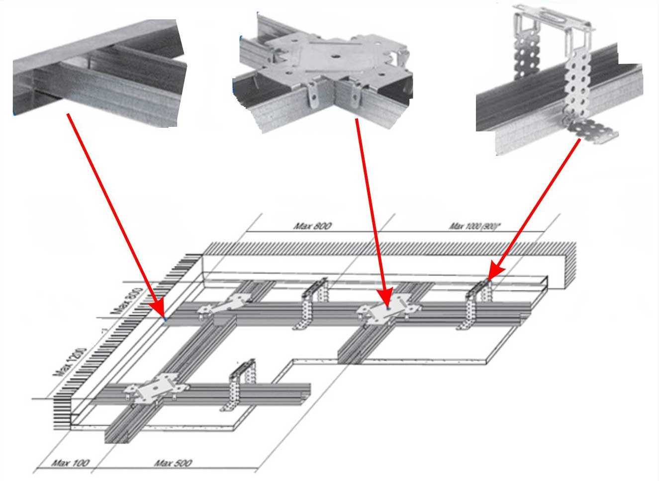 Схема монтажа гипсокартона на деревянный каркас подвесного потолка