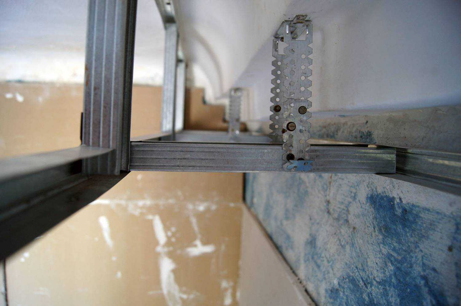 По периметру установлен профиль UD, а на потолке прикручены П-образные подвесы