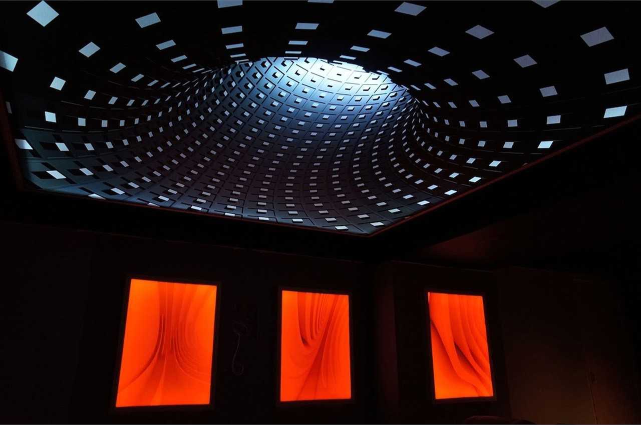 Отличие монтажа 3Д натяжного покрытия от обычного заключается в использовании особых разделителей в форме трехмерных граней. Часто эффект объема достигают за счет правильного расположения искусственного освещения, поэтому важную роль играет установка светильников до натяжения полотен.
