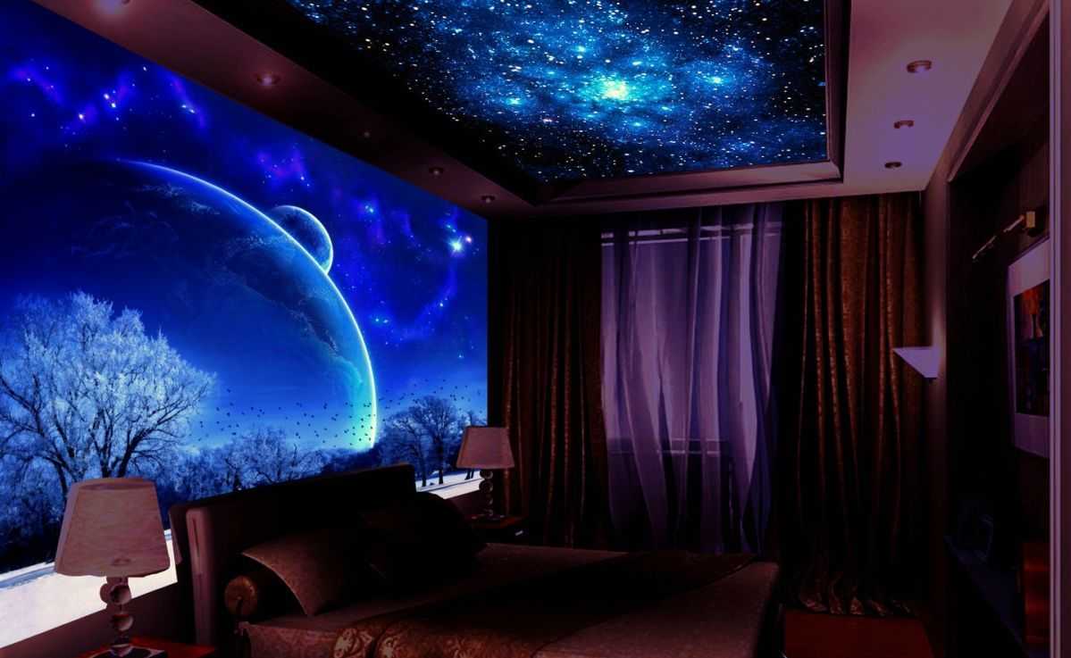 Если вам хочется чего-то более оригинального и интересного, то и в этом случае производители натяжных потолков постарались. Сегодня можно установить полотна со звездным небом над головой, или сделать фотопечать на материале того изображения, которое вы сами выберите.