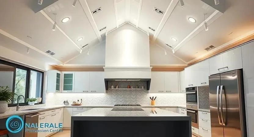 Освещение потолка трапецией: Точечные светильники, светодиодная лента, люстры, зонирование, сценарии освещения