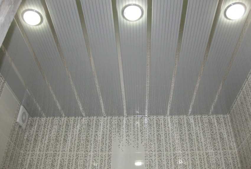 Реечные потолки в ванной маскируют дефекты и коммуникации расположенные под потолком: вентиляцию, разведенную электропроводку для освещения и водопроводные трубы. При этом такой потолок легко разбирается, предоставляя необходимый доступ к коммуникациям.