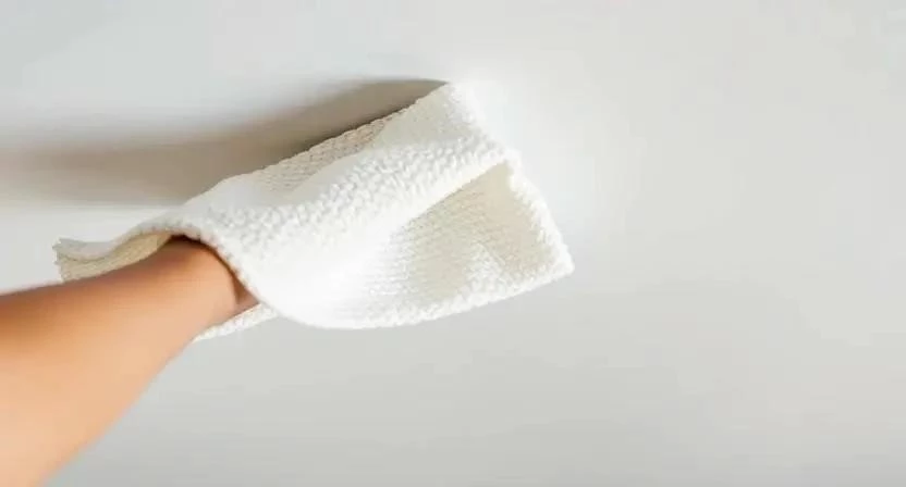 6. Высушите потолок: протрите потолок сухой микрофиброй. (5 минут)