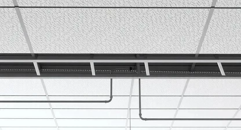- Подвесные потолки: К потолку крепится металлический каркас, к которому крепятся плиты или панели.