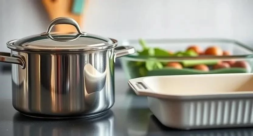 Нержавеющая сталь: Прочный и гигиеничный материал, который не ржавеет и не выделяет вредных веществ. Посуда из нержавеющей стали подходит для приготовления пищи и сервировки стола.