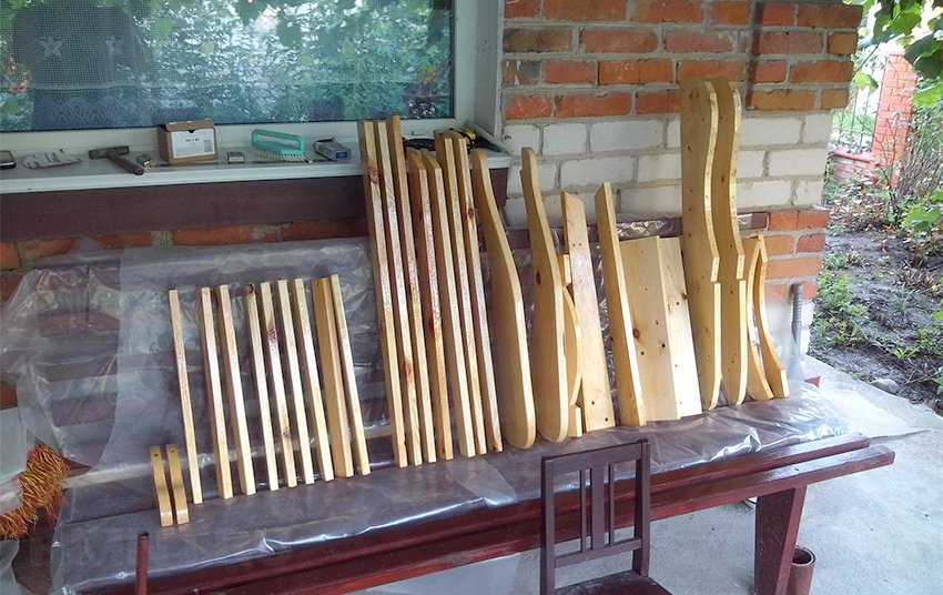 - подготовить 2 боковины, 40 поперечных реек и 3–4 царги;