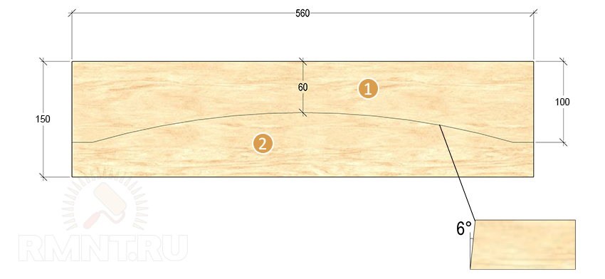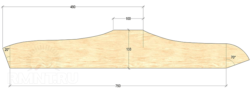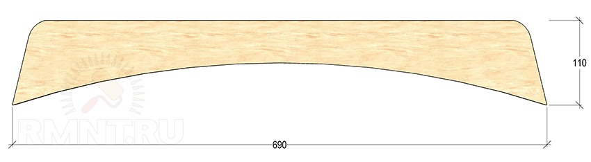 Доски на спинку имеют максимальную длину порядка 70 см и обычно подрезаются парно (левые и правые) со скруглением концов.