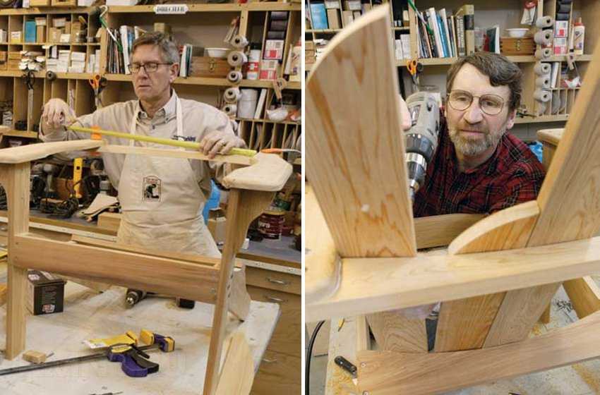 Важно, чтобы они находились немного выше сидения. Для этого торцы материалов нужно укоротить на 1,5–2 см. Пошаговая инструкция к любой модели кресла поможет без ошибок зафиксировать от 8 до 10 планок сидения, спинки изделий, передние и задние ножки