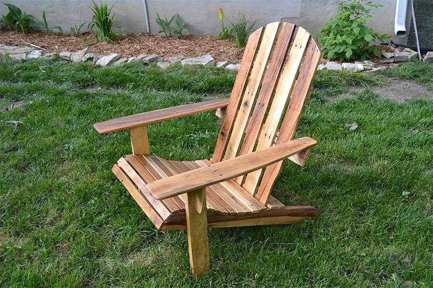 Если под рукой есть чертеж кресла адирондак, получится оригинальное изделие с забавно изогнутыми ножками