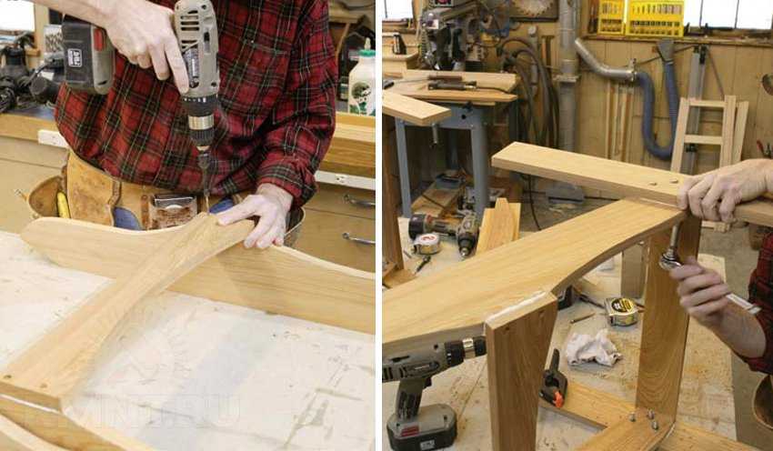 - Зафиксировать элементы столярным клеем, а отдельные части соединить струбцинами согласно инструкции. В работе могут пригодиться и декоративные саморезы.