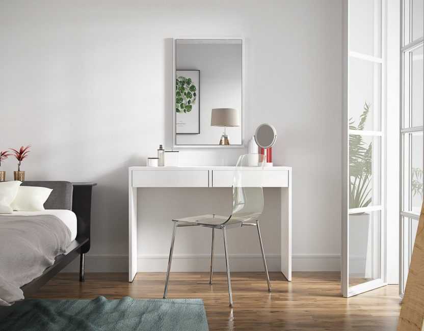 С последним вариантом всё понятно – это, как правило, вытянутый горизонтально комод с несколькими отделениями (под косметику и некоторые предметы гардероба) и с зеркалом примерно на уровне груди.