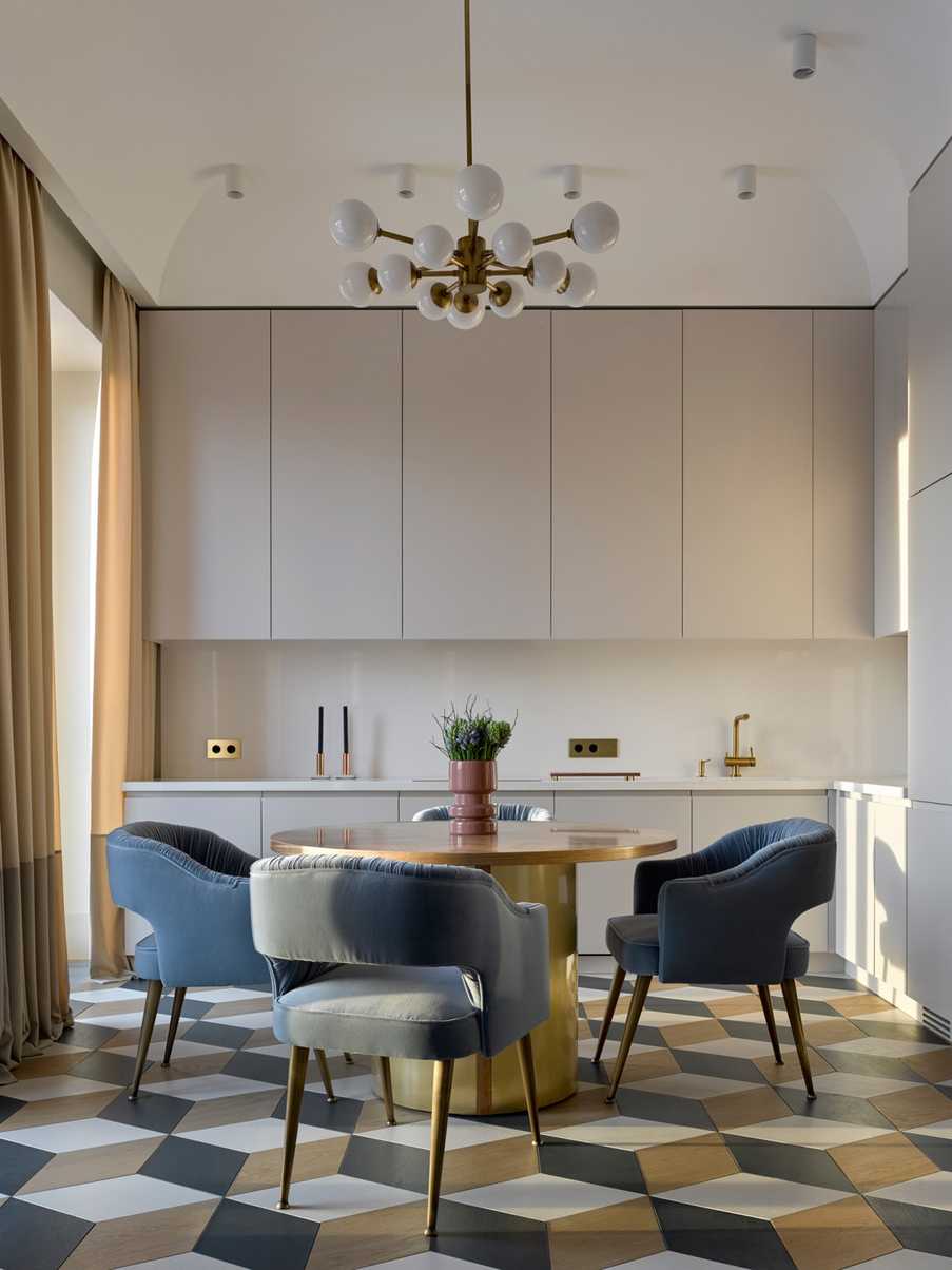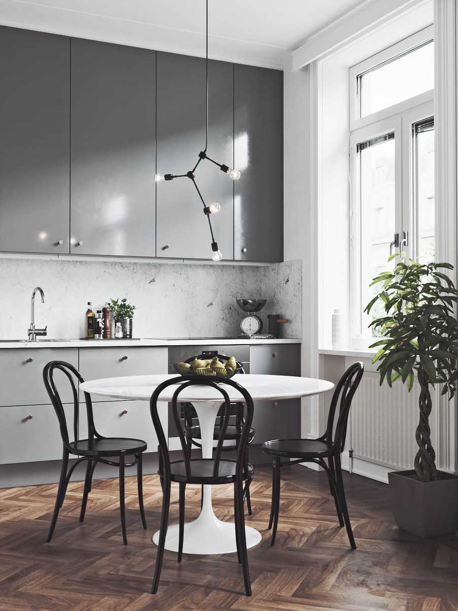 Квадратный стол — отличный вариант для строгой и функциональной кухни, в интерьере которой преобладают прямые и четкие линии.