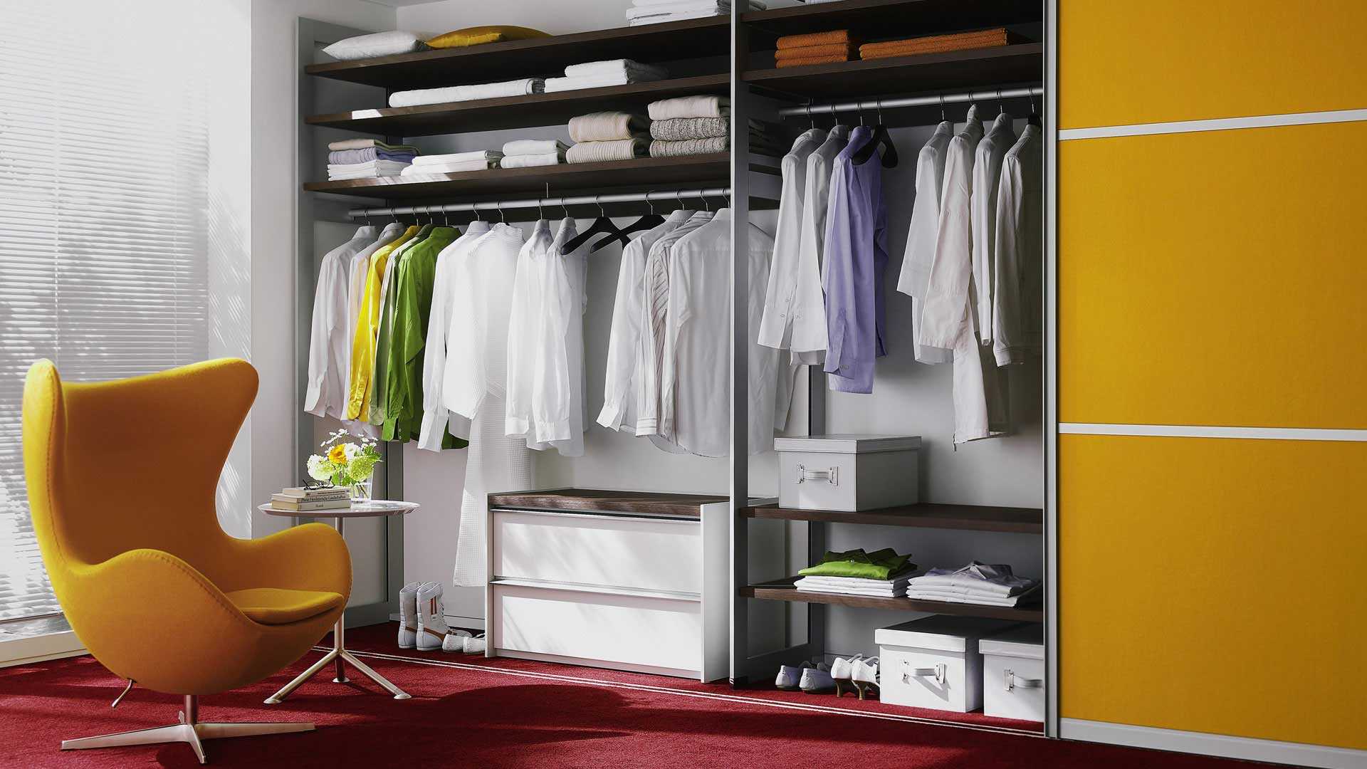 Модульные шкафы для одежды – представляют собой конструкции, позволяющие варьировать конфигурацию путем перестраивания отсеков модулей. Это может быть неглубокий шкаф с торцевой штангой или крючками под одежду глубиной 40 см. Мобильная система может включать в себя столько отсеков, сколько требуется. Это современное и практичное решение шкафа для одежды и обуви. Также штанга может располагаться вдоль задней стенки. Такой экземпляр будет глубиной 60 см и может даже содержать небольшой комод.