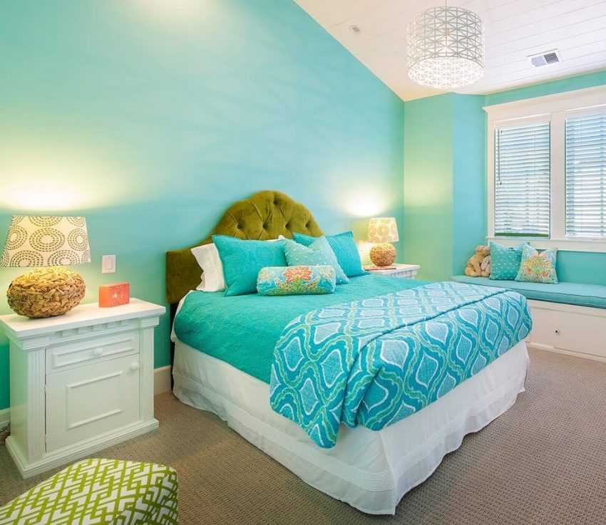 - сочетание бирюзовых, синих, зеленых красок привнесет в комнату «морское» настроение. Палитра в светлых пастельных тонах придаст обстановке нежности. А более насыщенные краски сделают интерьер активным, энергичным;