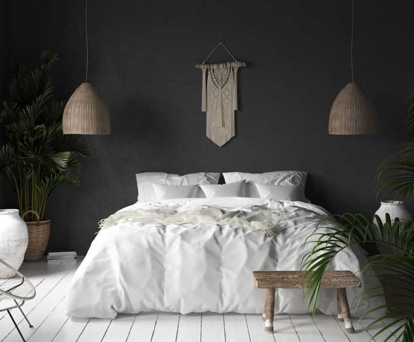 При выборе спальни в чёрном цвете необходимо учитывать декоративные материалы для отделки. Какие составляющие выбирают для каждой зоны?