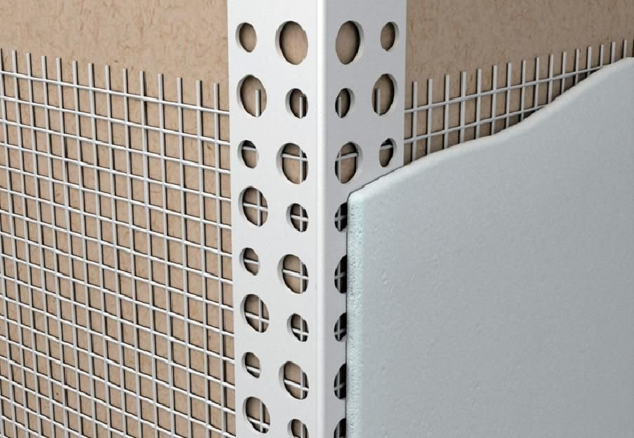 Прикладывается небольшой перфорированный угол из пластика, подсыхает, а затем перекрывается финишным слоем.