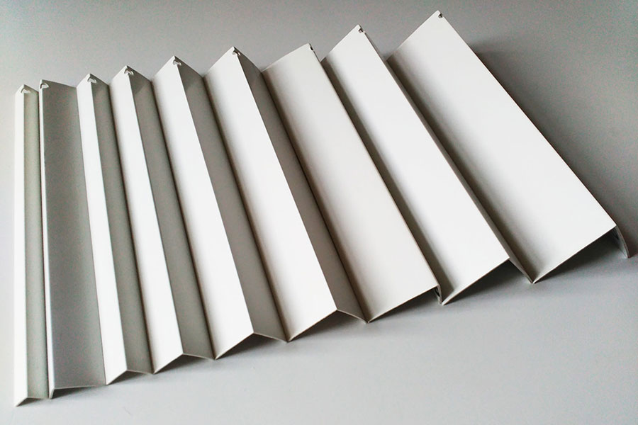 Для завершения отделки откосов применяются уголки в цвет откоса, почти всегда это белый. Часто материалам для откосов служит сэндвич-панель, поэтому, чтобы материал не сильно отличался, применяются угловые профили из ПВХ. Ширина полочки выбирается такая, чтобы закрывала торец панели или ГКЛ. При наличии каких-либо дефектов отделки возле оконного проема, например, неровно отрезанных обоев, уголок выбирают такой ширины, чтобы эти ошибки были закрыты. Угол между стеной и откосом обычно больше 90°, для того чтобы уголок лег ровно его следует слегка «разогнуть» — положить на плоскую поверхность или трубу большого диаметра и несильно надавить руками, перемещаясь вдоль уголка.