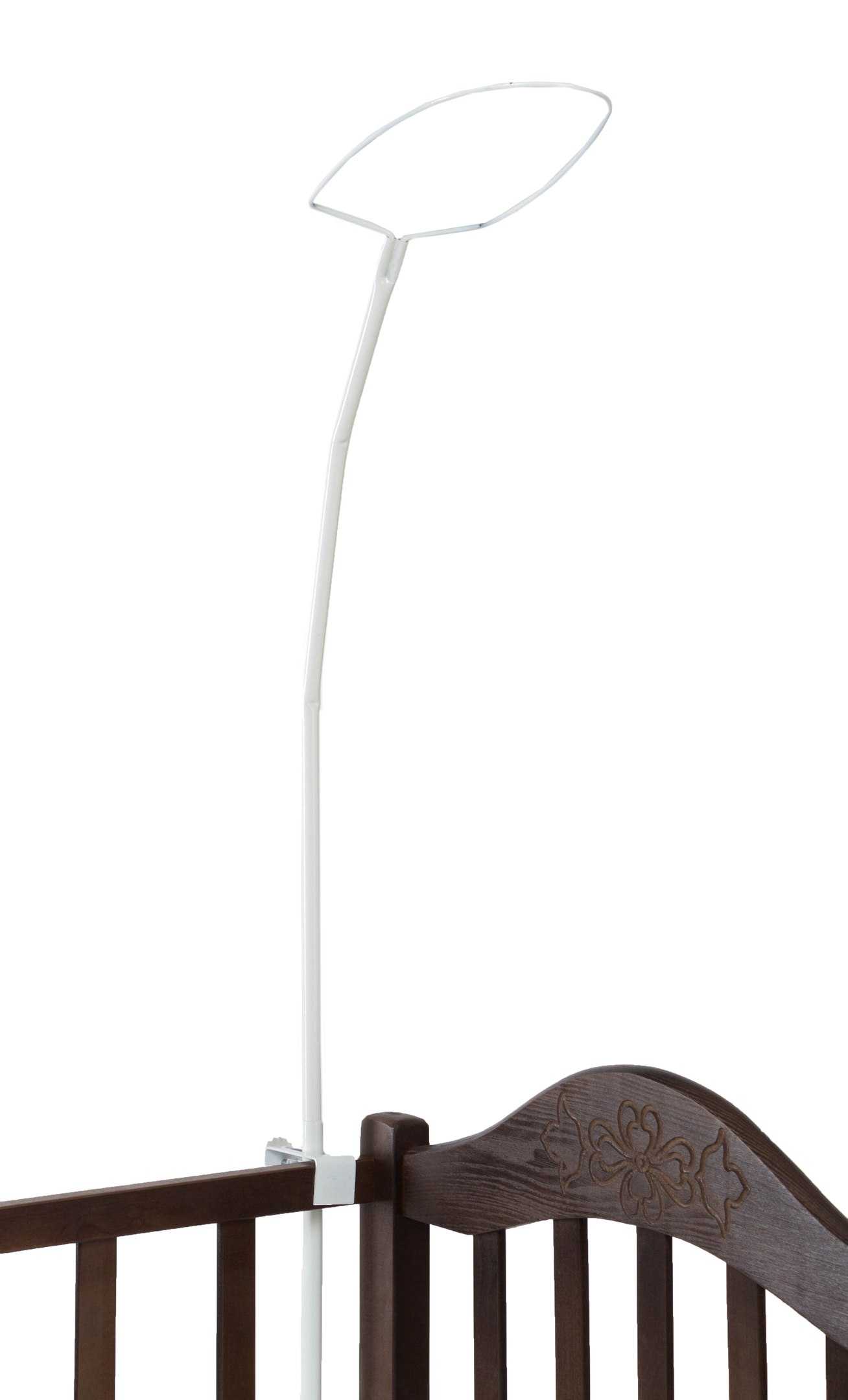 Держатели для балдахина на детскую кроватку сейчас изготавливаются из разных материалов, но первое, на что обращают внимание — прочность. Крепление, скорее всего, будет скрыто тканью, поэтому его внешние характеристики не так важны. Чаще всего бывают белые и металлические