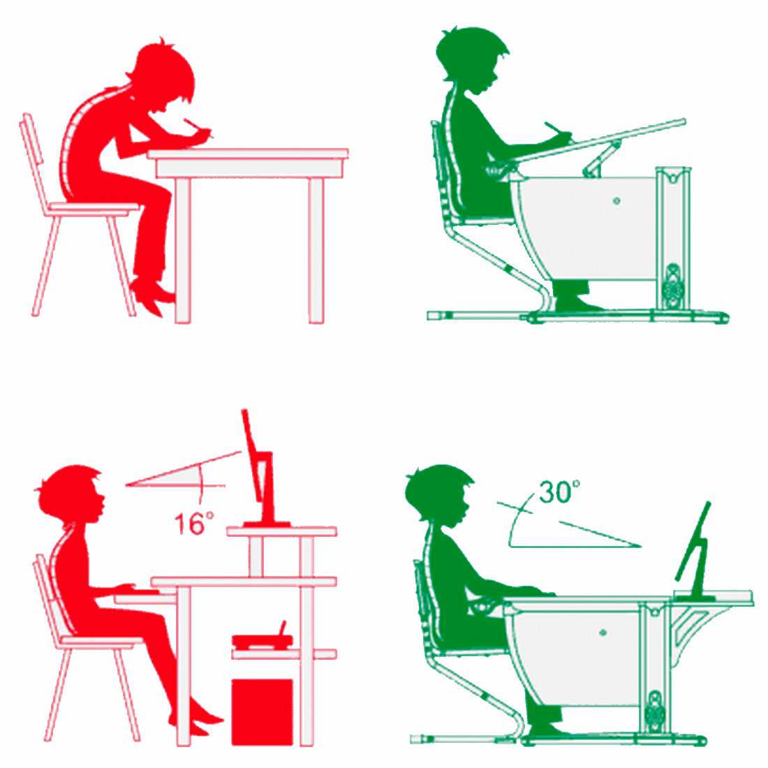 - обеспечивают удаленность глаз на нужном расстоянии от тетрадей, снижая риск ухудшения зрения.