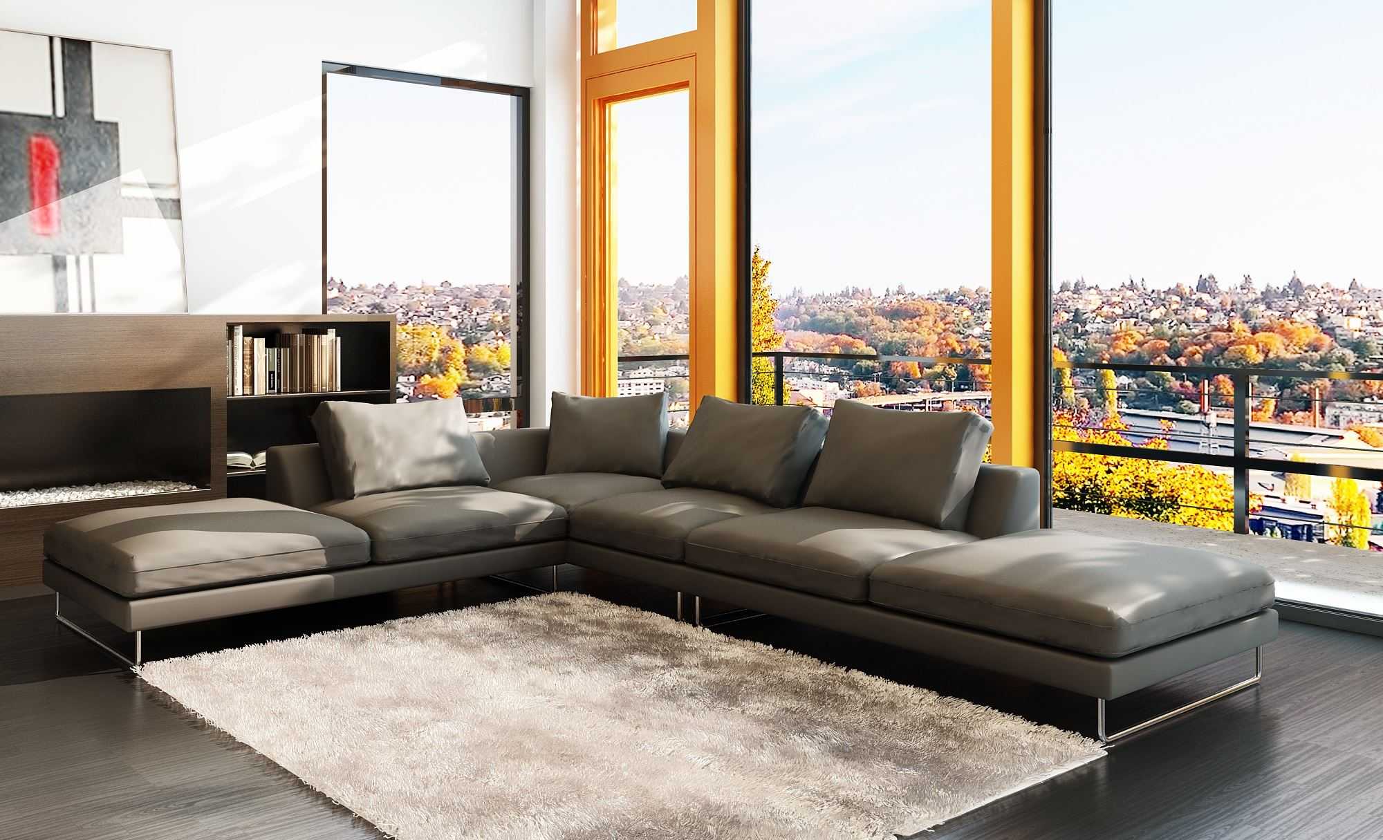 Он обеспечит большое количество сидячих мест, что важно именно для гостиной. Стильно глядят модели в кожаной обивке
