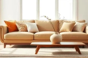 Главным элементом декораций является материал, которым оформлен диван. При выборе подходящей модели необходимо учитывать структуру и расцветку ткани. Актуальными тенденциями 2020 года считаются натуральные компоненты.