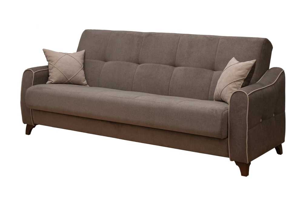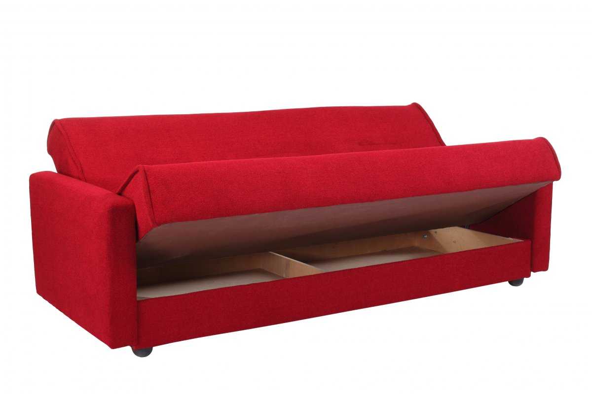 Анатомический матрас способен складываться и раскладываться вместе с диваном. Это абсолютно не вредит его свойствам. Чтобы превратить данный диван в кровать, потребуется минимальное количество приложенных усилий и всего несколько секунд времени. Его можно поставить у стены, это поможет сэкономить дополнительное пространство. Внизу встроен ящик для постельного белья.