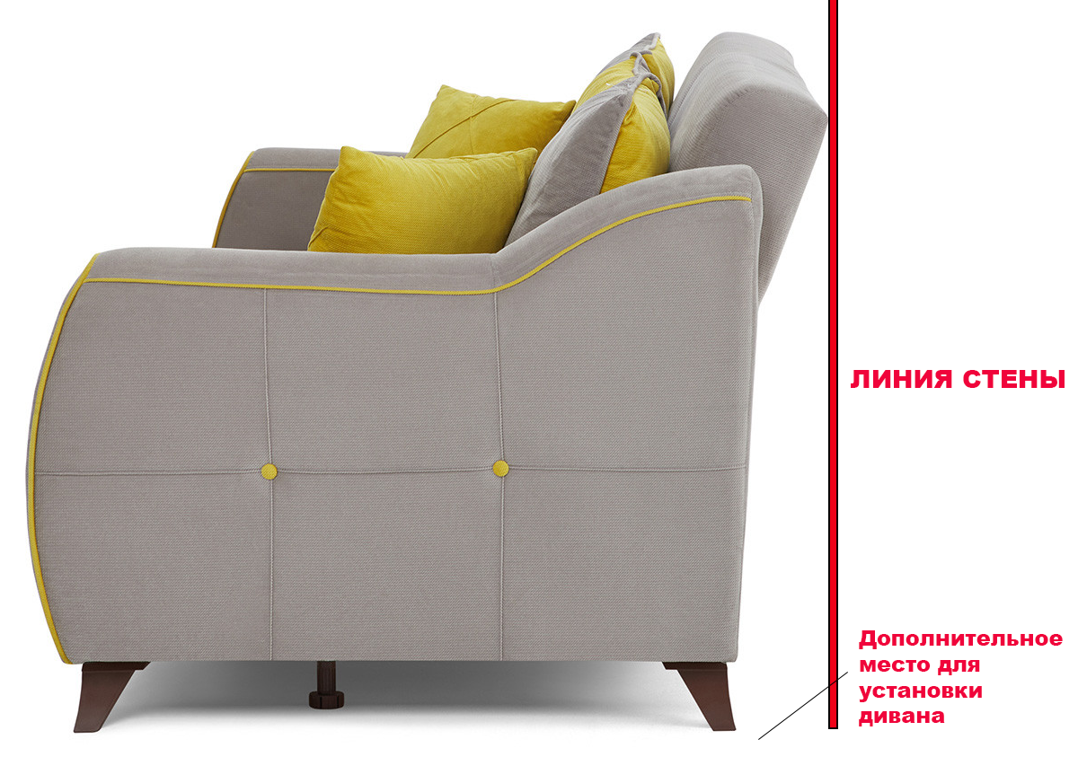 Ещё одной особенностью конструкции дивана книжка является то, что он не может стоять плотно к стене спинкой. Для раскладывания дивана в кровать книжке требуется около 25 сантиметров пространства позади его спинки.