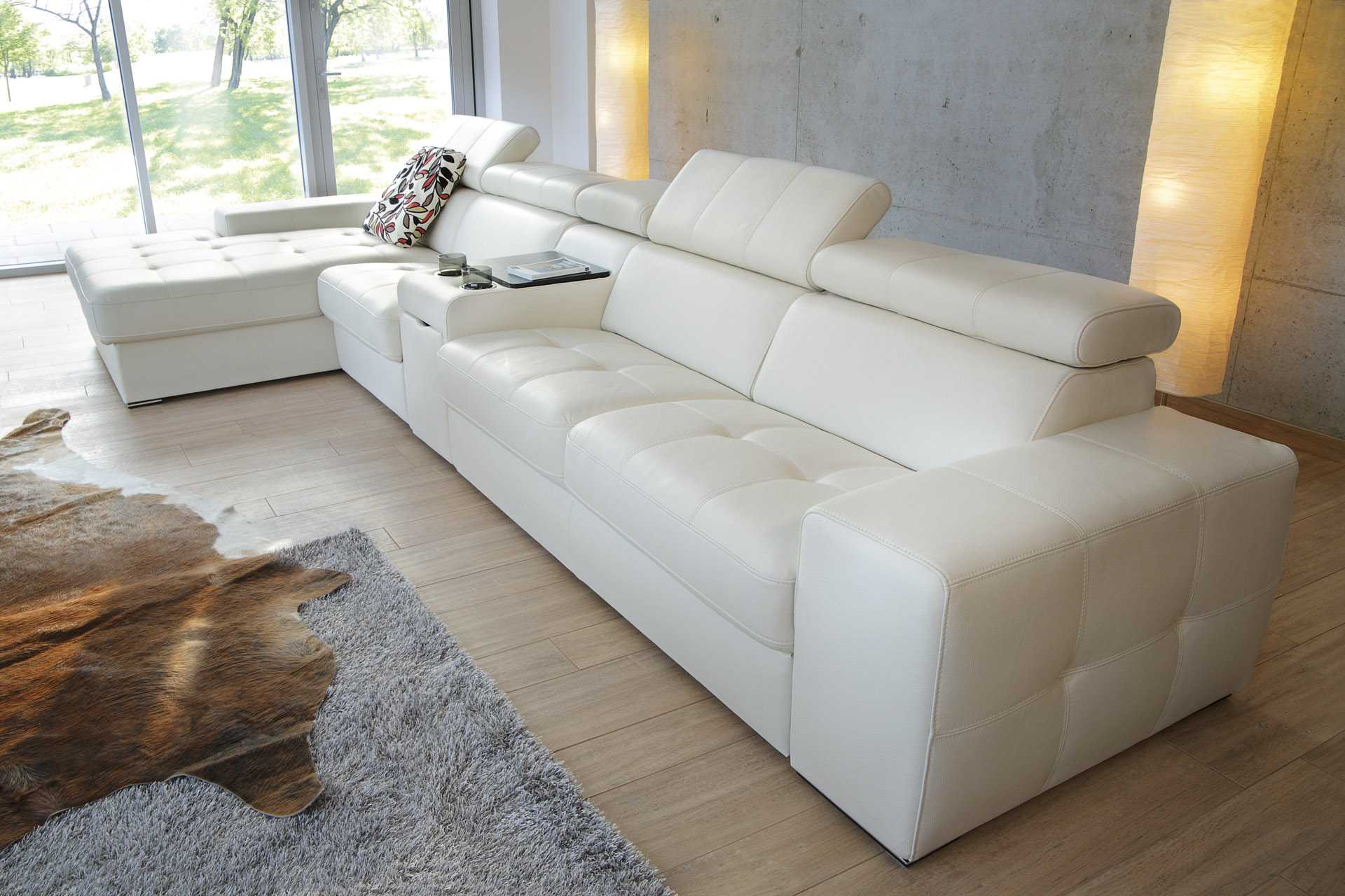 Доступны к приобретению диваны из кожи с подлокотниками и подголовниками, которые регулируются. К покупке предлагаются даже такие диваны, которые оснащены столиками и имеют встроенный мини-бар.