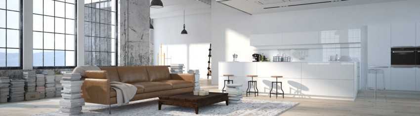 Внедрить идеи этого стиля в жилое пространство достаточно непросто. Прежде всего потребуется избавиться от перегородок, которые сковывают пространство. Но это сделать не всегда возможно.