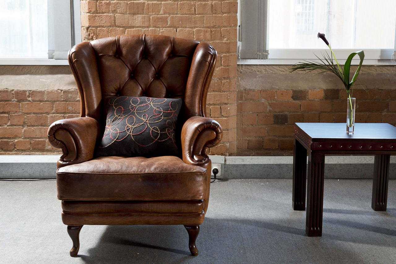 - Натуральная кожа – практичный и качественный материал. Кожаная мягкая мебель выгодно подчеркивает роскошь интерьера. Такая обивка актуальна для любого стиля. Особенно элегантно смотрятся классические кресла из кожи, декорированные каретной стяжкой или резным деревом.