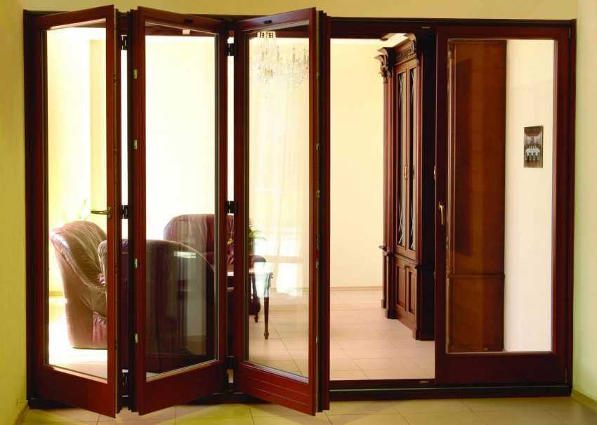 Легкие воздушные прозрачные двери будут превосходно гармонировать с деревянной отделкой помещения. Варианты со стеклянными вставками также смотрятся изящно. Полностью стеклянные модели идеальны для разделения жилой комнаты и балкона, лоджии. Ими можно ограничить выход на веранду в летнем дачном домике.