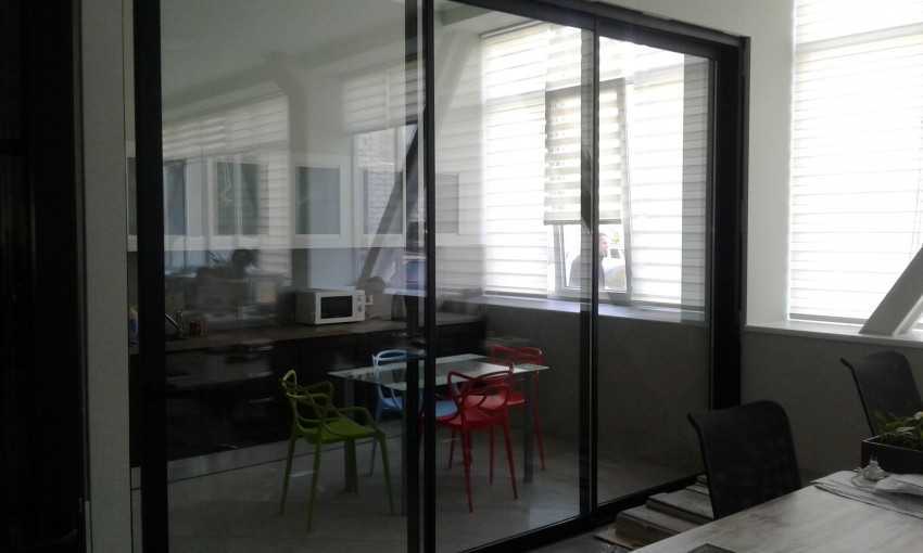 Стеклянные двери позволяют впустить в помещение дневной свет