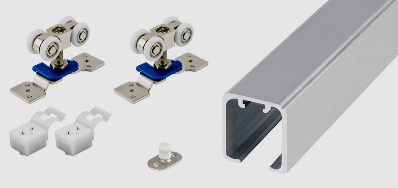 Идеальный вариант для раздвижных межкомнатных дверей. Поможет сохранить много свободного пространства. Максимально допустимая нагрузка – 120 кг. Производитель предоставляет на свою продукцию гарантию в 10 лет. В комплект входят стопоры, маскировочная планка, заглушки, ролики, скобы для крепления к стеновой поверхности. Направляющие анодированные. Отличаются не только прочностью, но и привлекательностью внешнего вида. Подойдут под любой интерьер помещений.