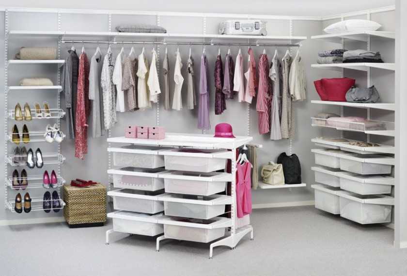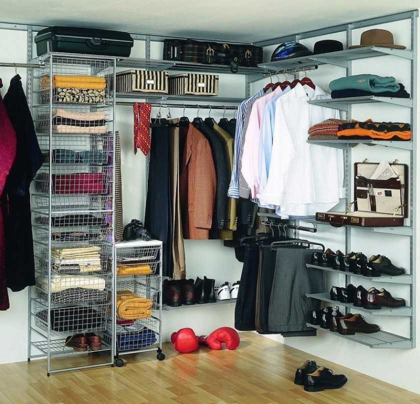 Помните: полок и ящиков в гардеробной должно быть в три раза меньше, чем секций со штангами и вешалками, — это поможет продлить срок службы вещей, и поддерживать их презентабельный вид.