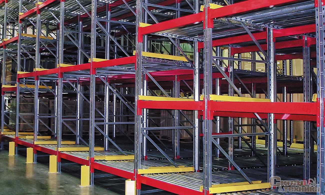 Гравитационные стеллажи для палет представляют собой неприводные гравитационные роликовые конвейеры, установленные на рамах палетных стеллажей под углом к горизонту. Такие конвейеры еще называют каналами гравитационных стеллажей.
