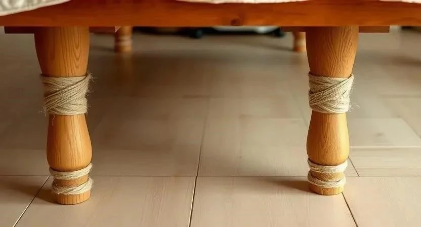 Декор ножек кровати лентами