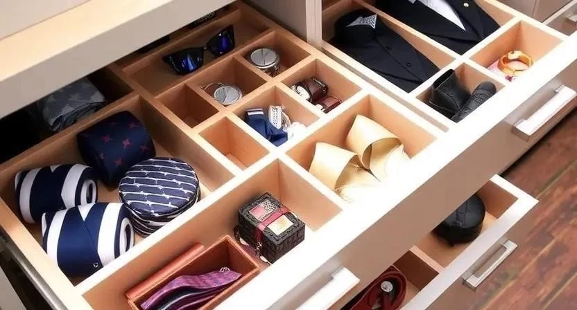 Для максимальной организации пространства внутри ящиков можно использовать различные системы хранения. Разделители позволяют разделить ящик на секции для разных типов вещей. Лотки и органайзеры идеально подходят для хранения мелких предметов, таких как носки, нижнее белье или галстуки. Полки позволяют хранить вещи стопками, экономя место. Выдвижные корзины обеспечивают удобный доступ к вещам, находящимся в глубине ящика. Недавно я приобрел набор органайзеров для ящиков, и это действительно помогло мне навести порядок в гардеробной.