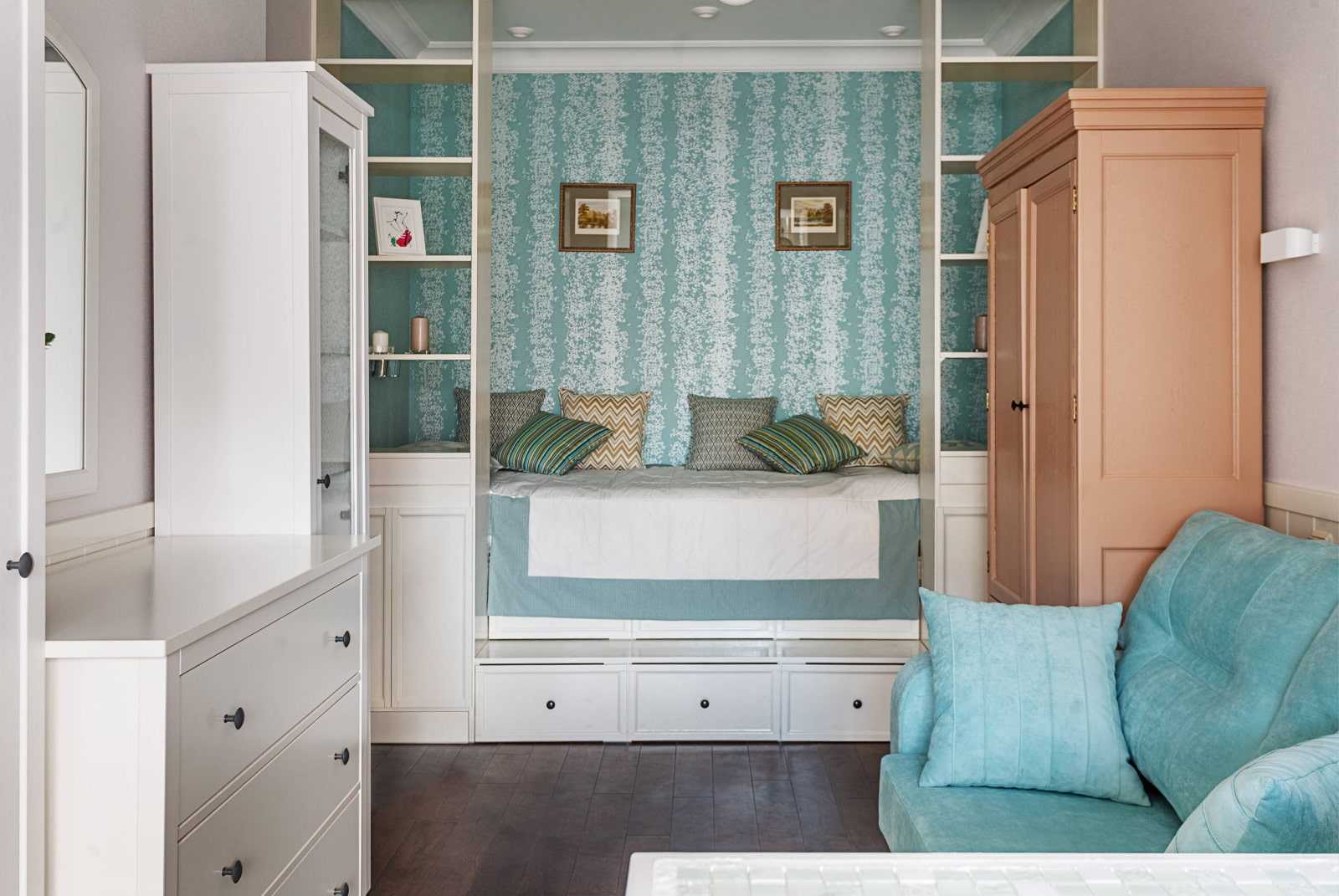 В небольших помещениях спальное место располагают у глухой стены