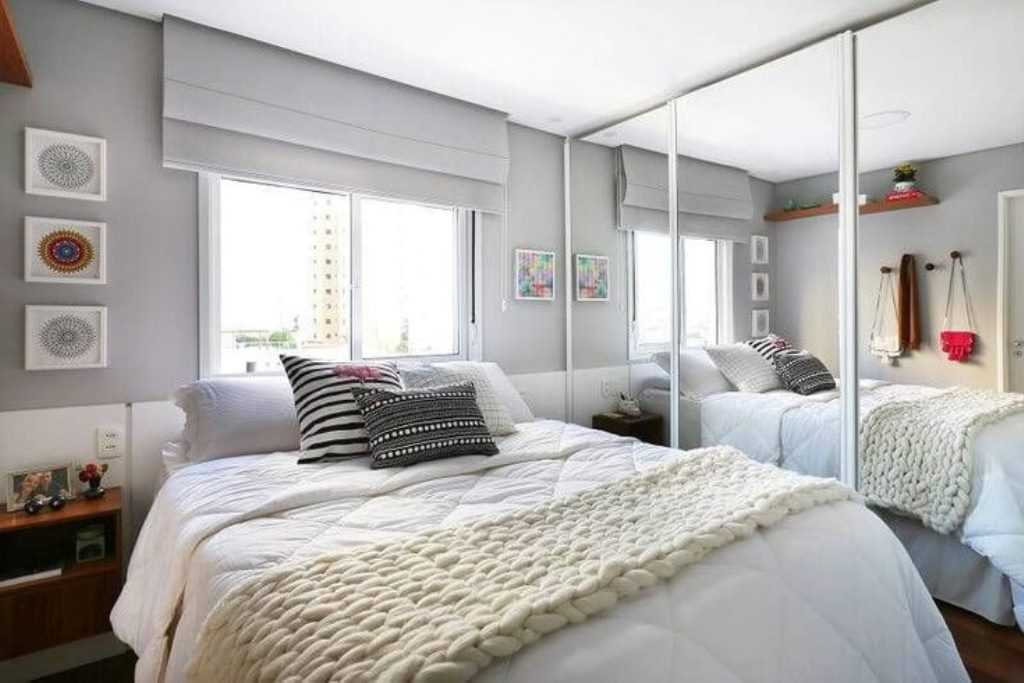 Еще как альтернатива варианту размещения зеркала вдоль стены, возможно разместить зеркало над кроватью в спальне, такой дизайн всем известен и давно используется, к тому же так возможно добавить больше “воздуха” пространству вашей комнаты.