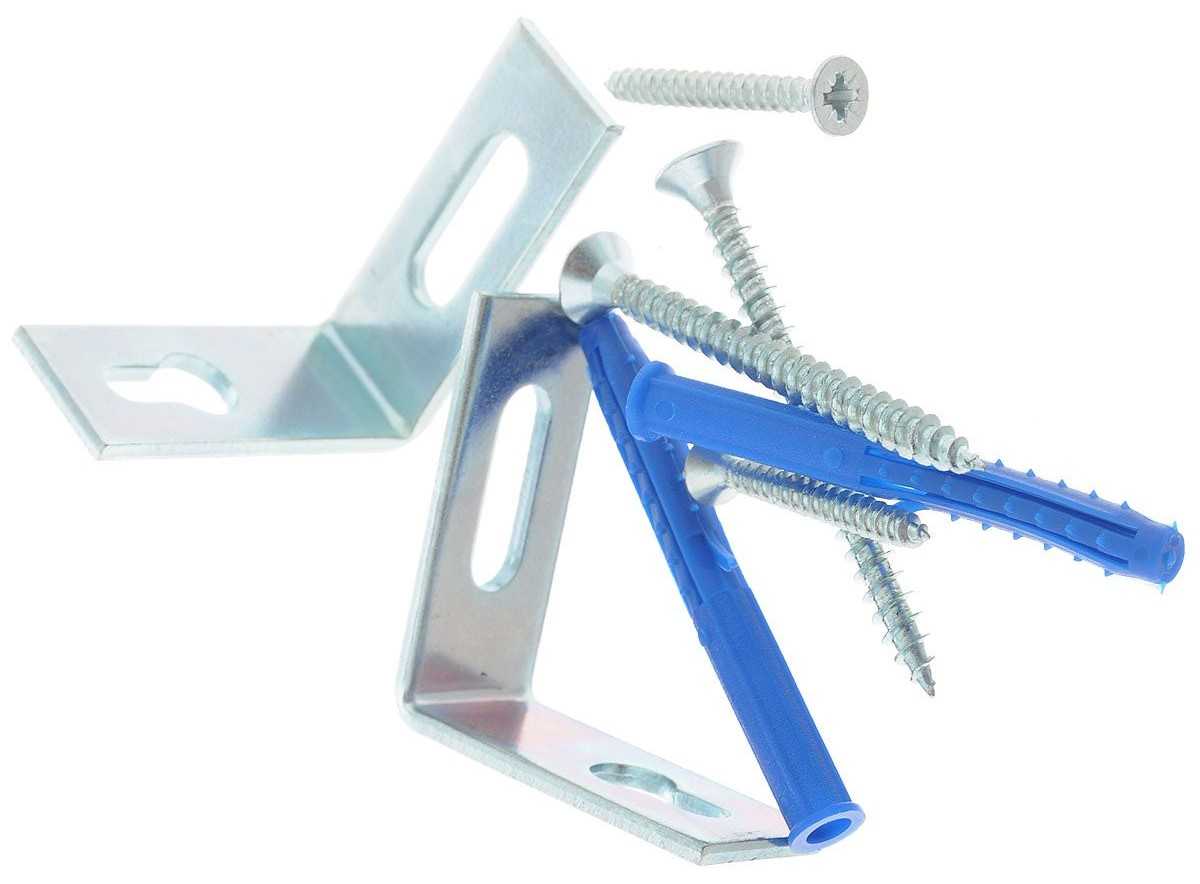 Для крепления к перегородке нужны мебельные уголки размером 20х20 мм, которые крепятся внутри конструкции к верхней перегородке.
